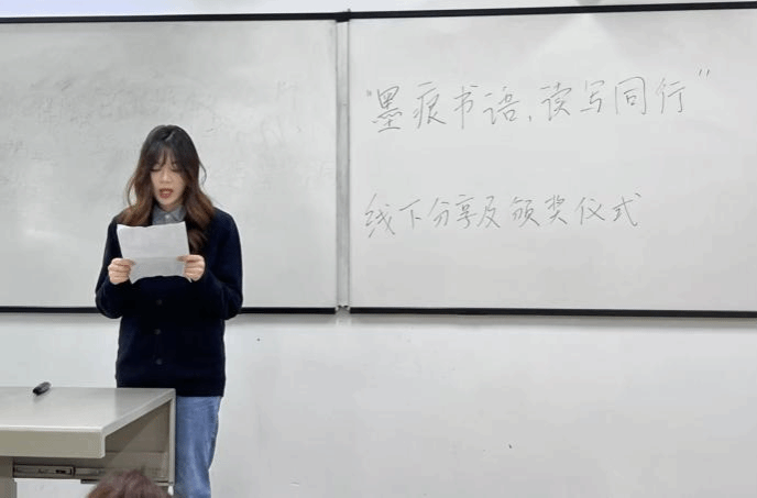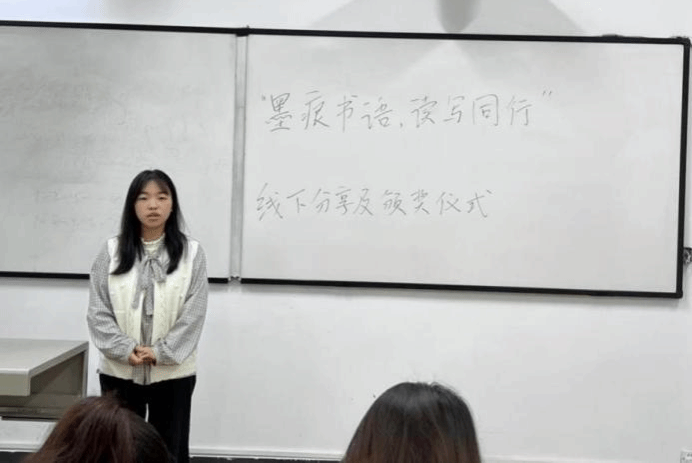 活动尾声,线下分享与颁奖仪式顺利举办。获奖同学代表依次登台,结合个人阅读笔记与推荐语录,分享读书过程中的所思所悟、荐书背后的动人故事,用真挚的表达传递书籍魅力,引发现场强烈共鸣。而后,进行颁奖仪式,为获奖同学颁发荣誉证书,肯定同学们在活动中的用心与收获,也为此次活动画上圆满句号。