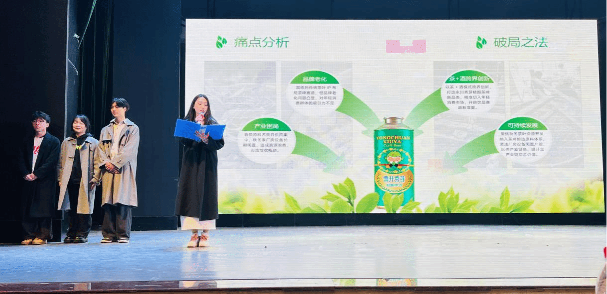 【本网讯】当高校期末考核撞上“现场路演”,当学生创意对接真实产业需求,一场硬核成果展示正在重庆对外经贸学院上演。1月6日,2023级新闻学专业《媒介策划》课程期末路演现场传来喜讯:学生团队自主策划的“永川秀芽精酿啤酒”系列方案成功签约商家,实现从课堂作业到市场产品的跨越,标志着新闻学专业产教融合教学改革迈出实质性步伐。
