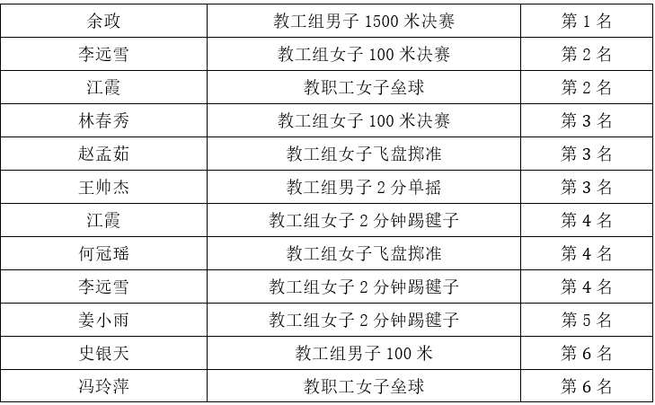 文学与创意传播学院的教职工奋力拼搏,以下是我院教职工在本届运动会的获奖完整榜单: